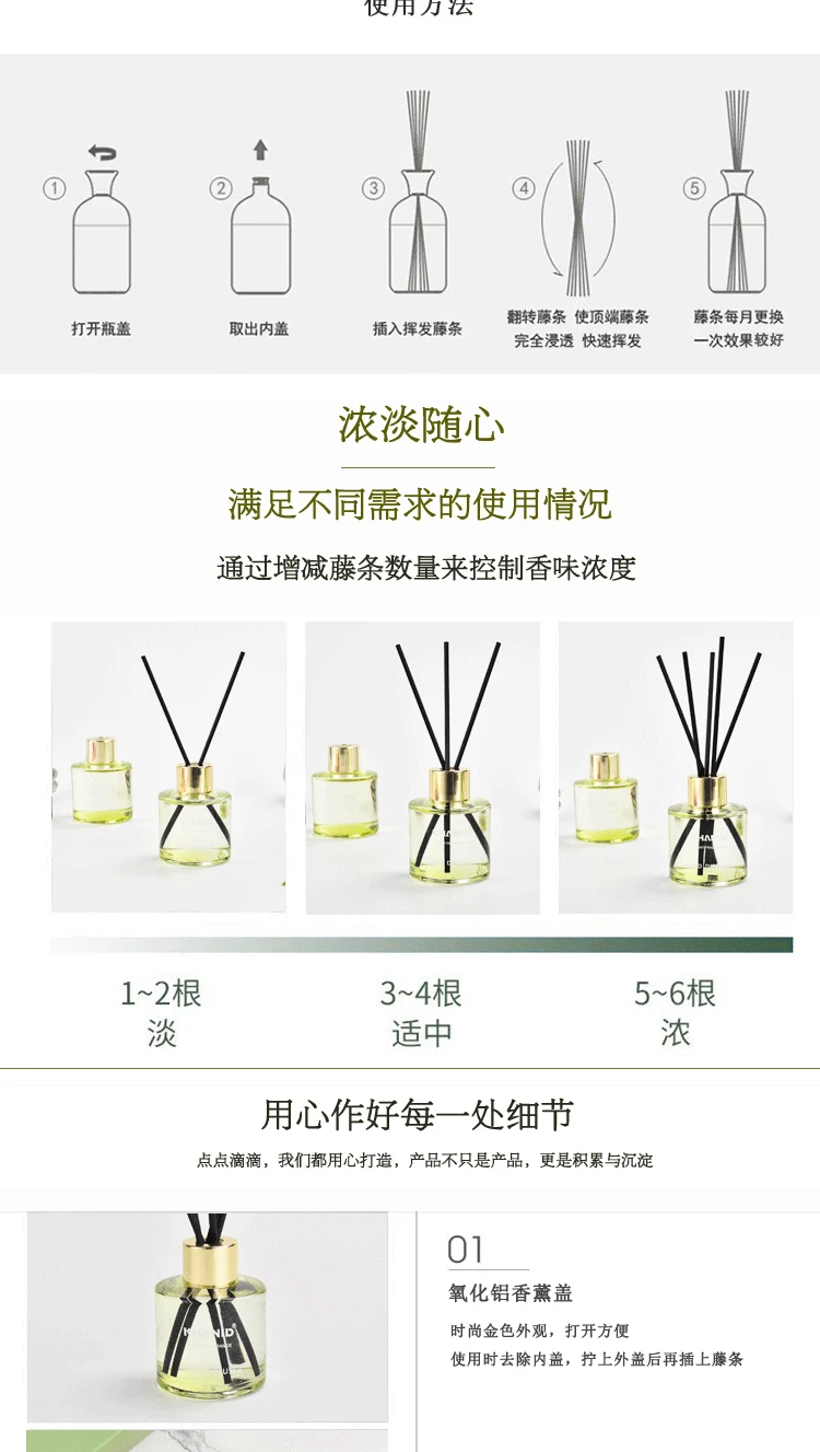 • Insert the fibre rod into the bottle and place it in a cool, dry and smooth place. Do not place near open fire.