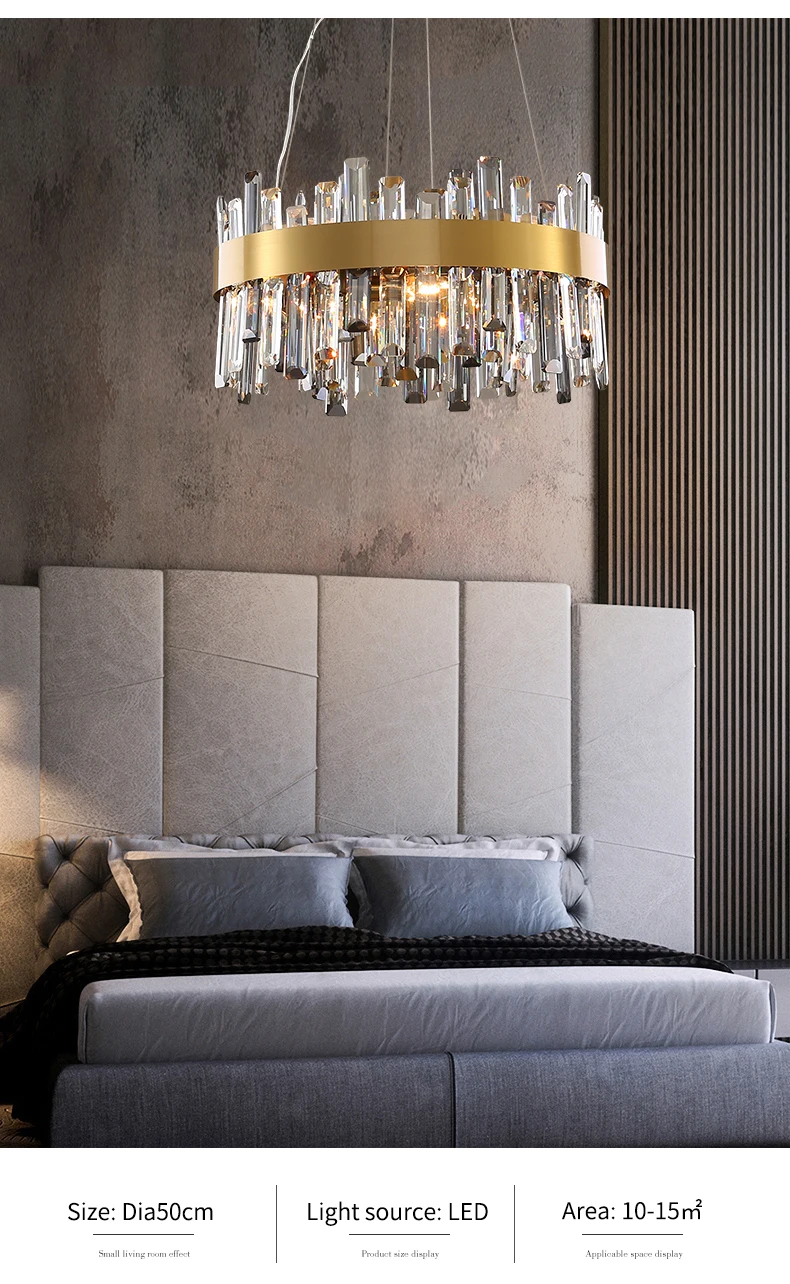 The brushed metal lamp body and the crystal lampshade combine to be practical and beautiful.