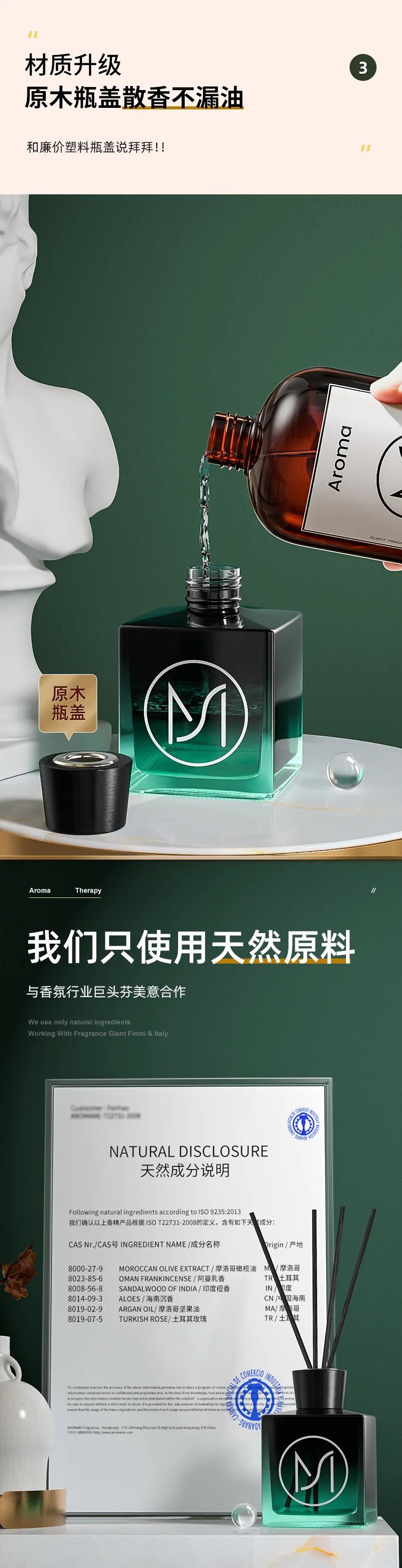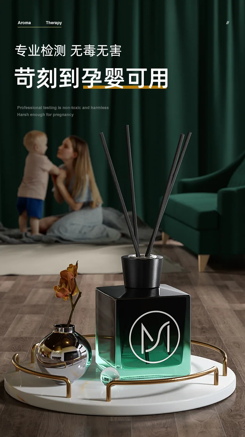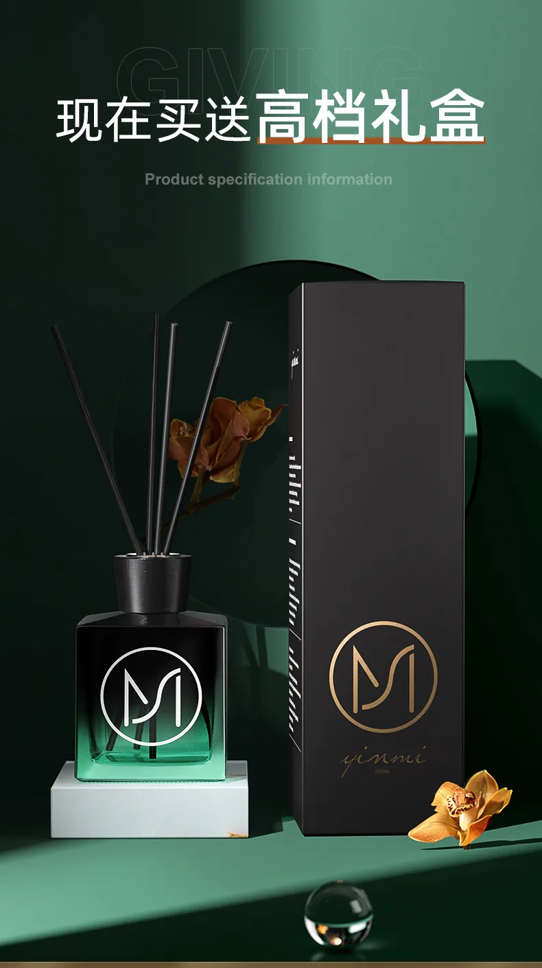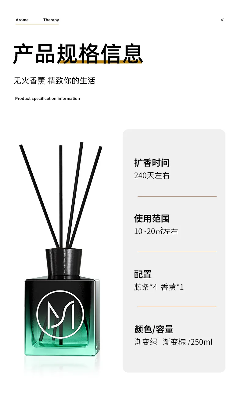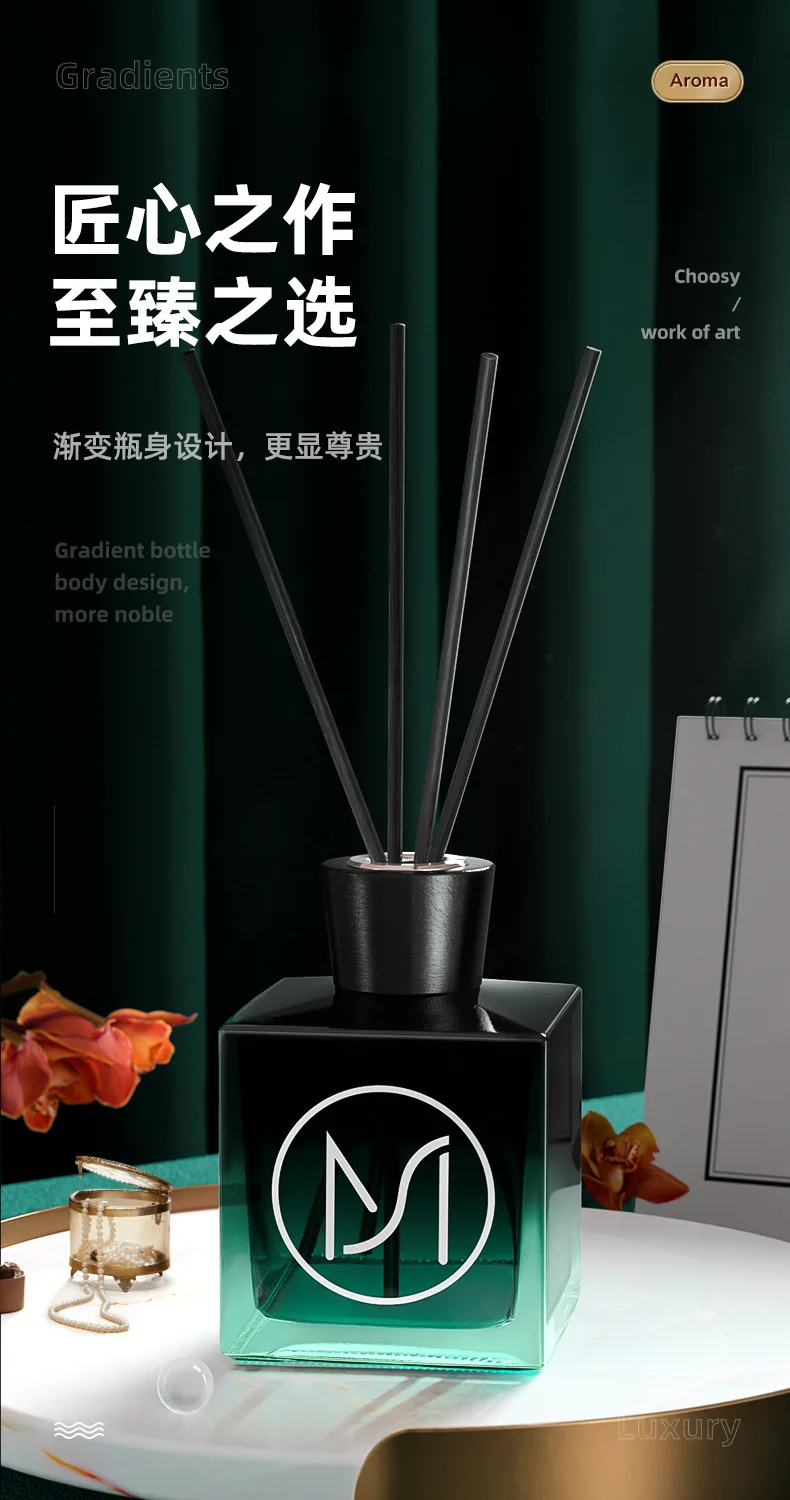 Gradient Green/Brown Bottle Black Wooden Cap Reed Diffuser