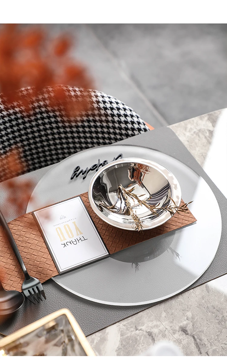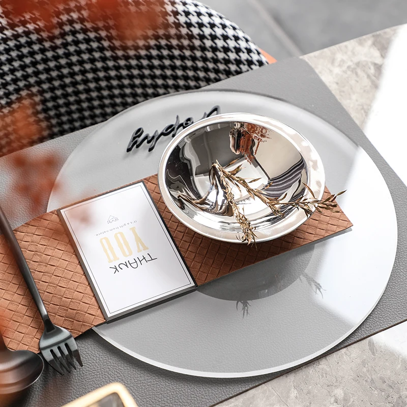 High End Creative Round Acrylic Tray Mat Stainless Steel Bowl Set