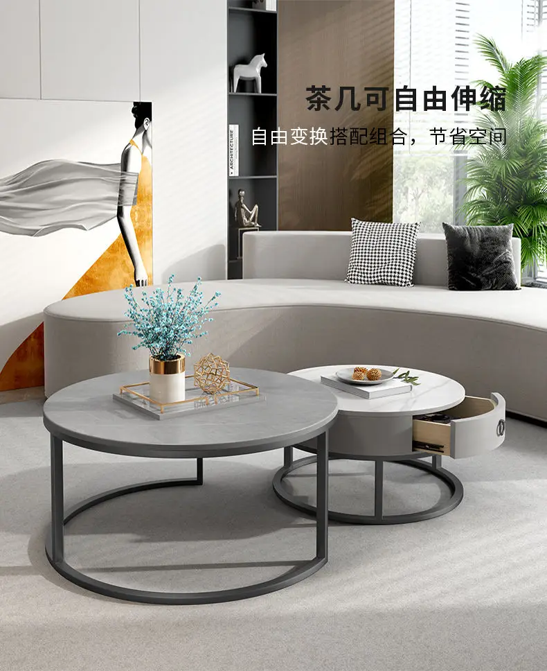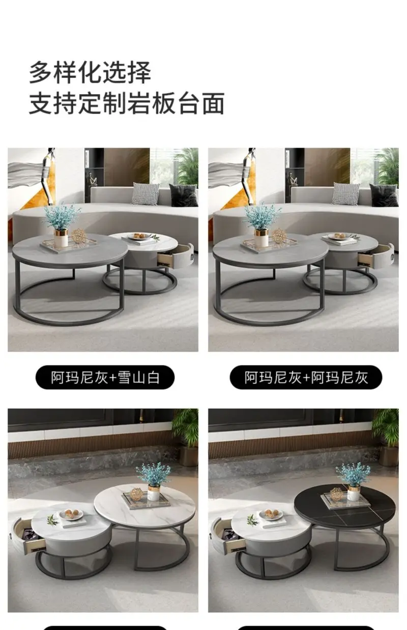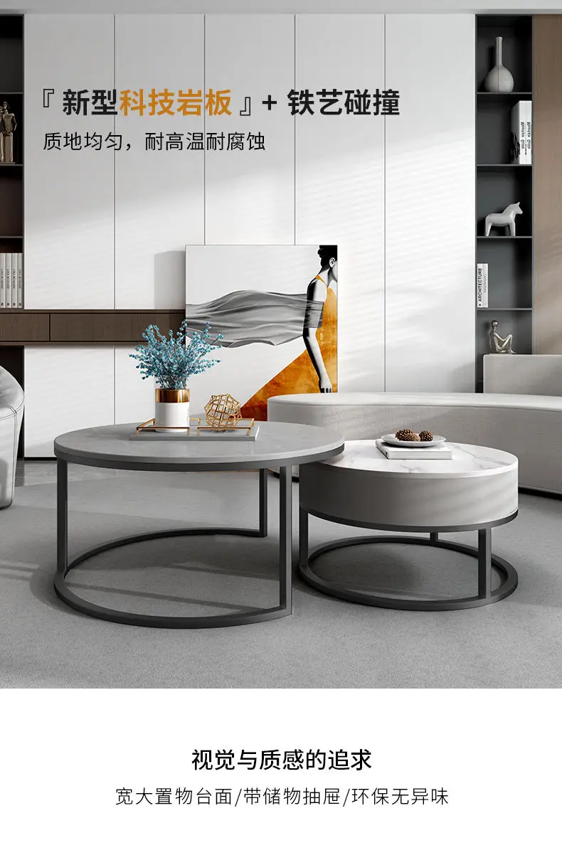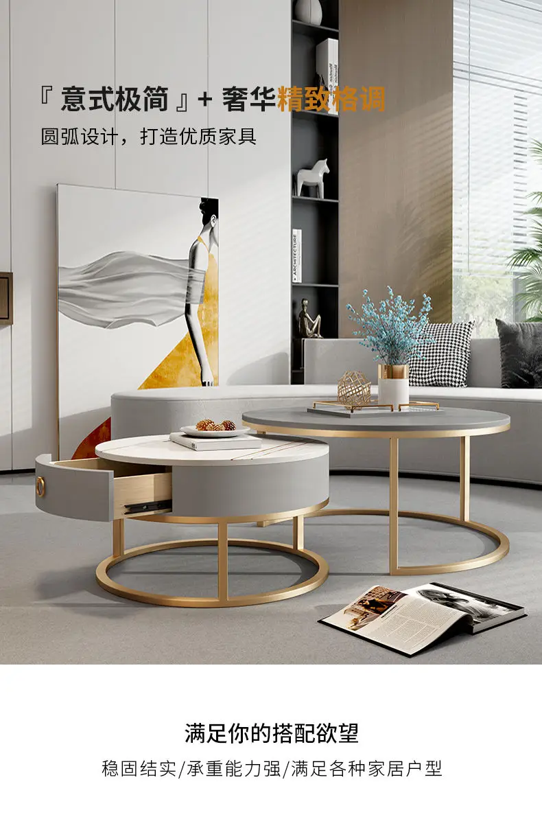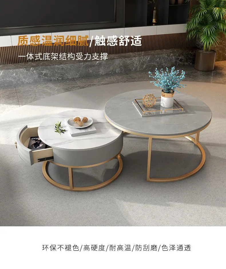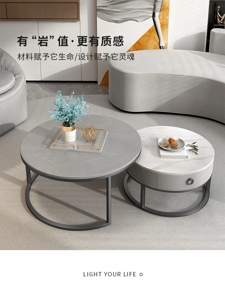 Italian style rock board coffee table table living room home simple nordic round coffee table light luxury modern
