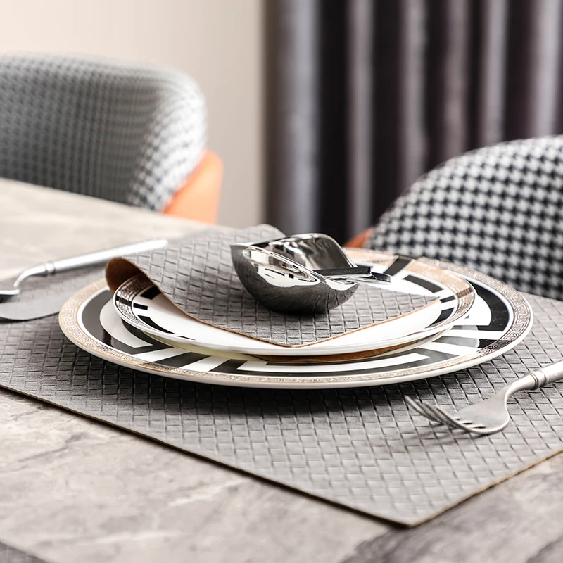 Luxury Black And White Geometric Lines Portrait Dinnerware Set