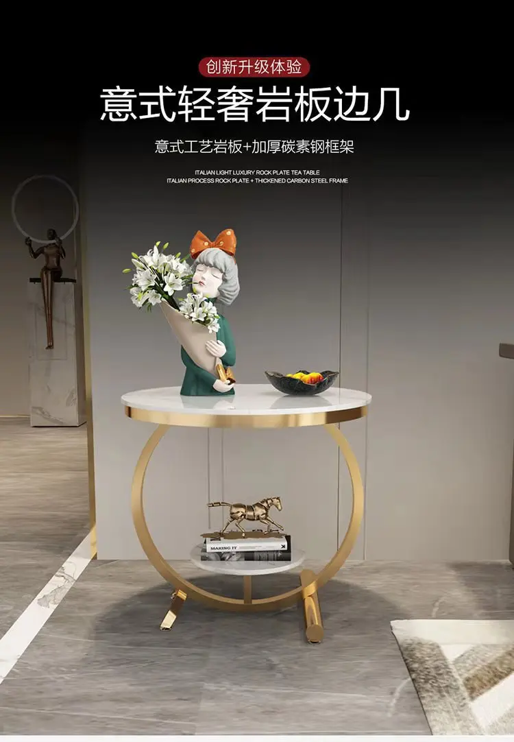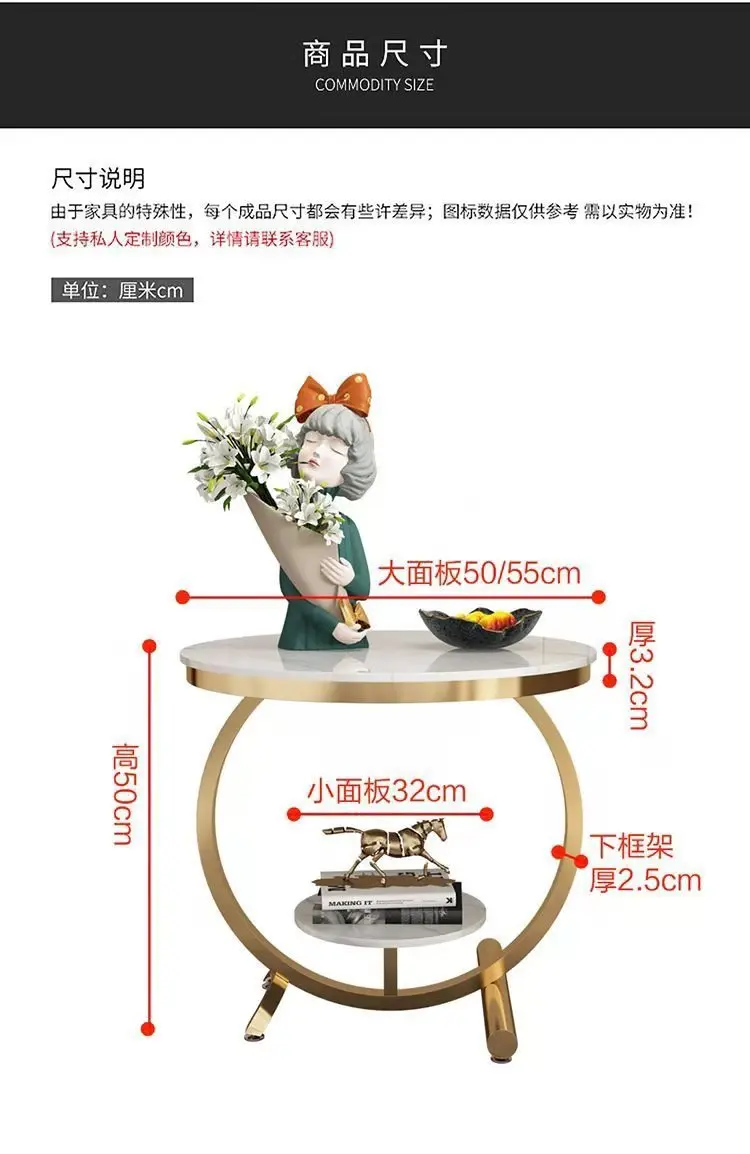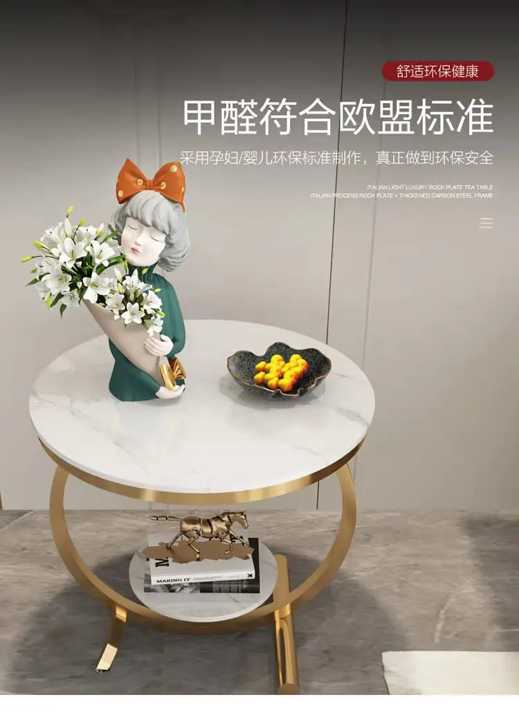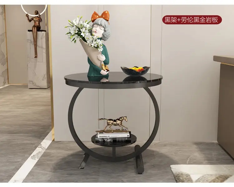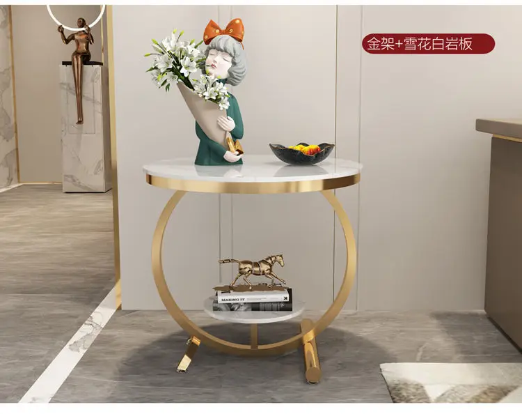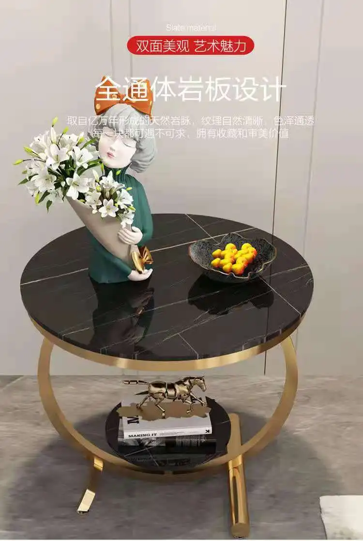 Luxury Two Layer Marble Coffee Table Corner Table Creative Movable Small Round Table Golden Black Frame Home Furniture
