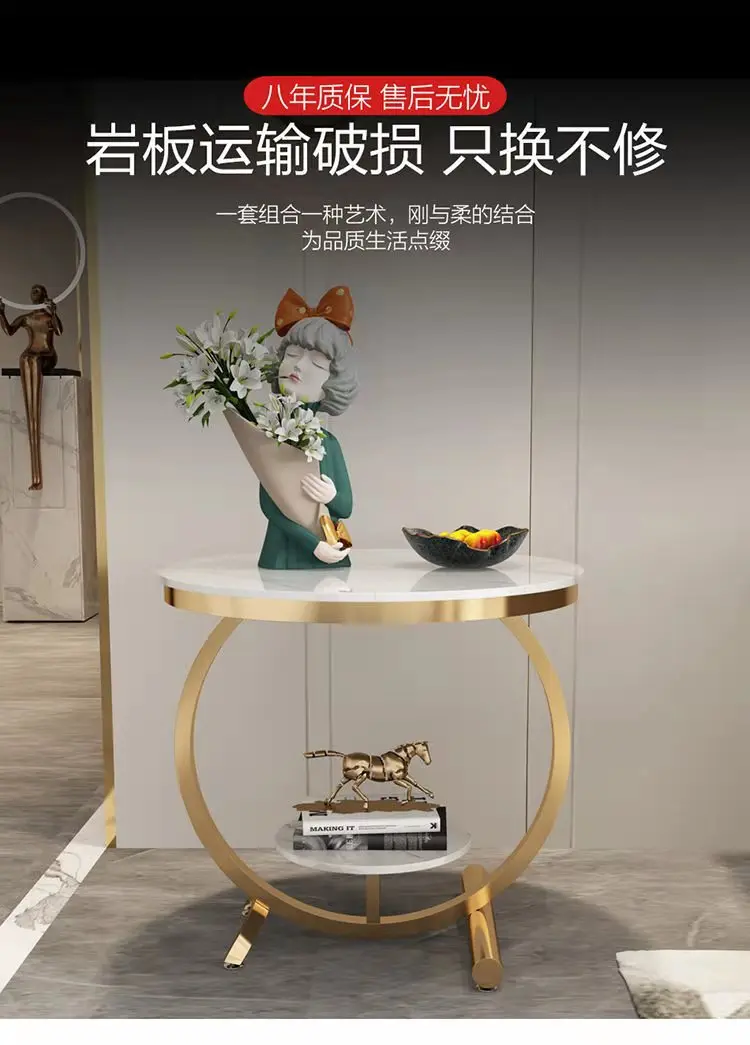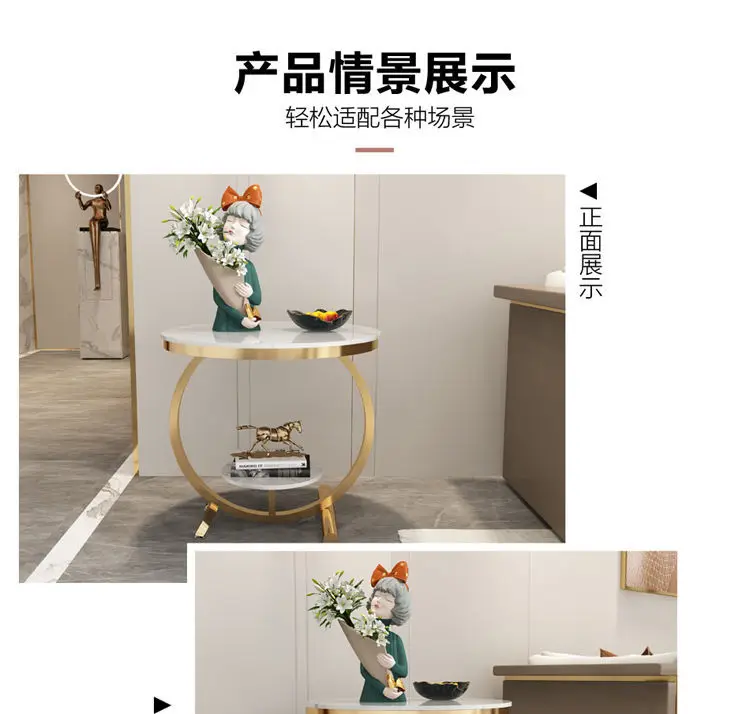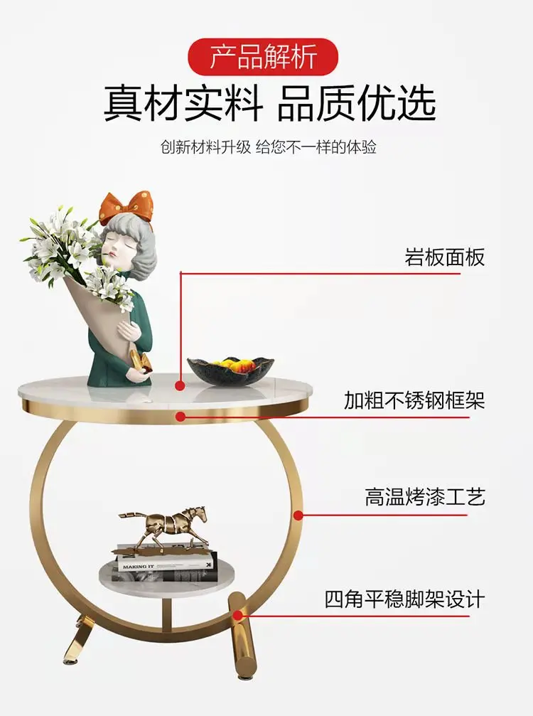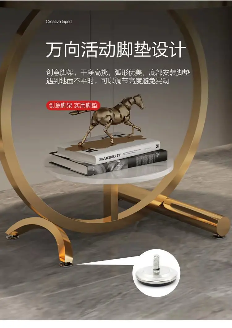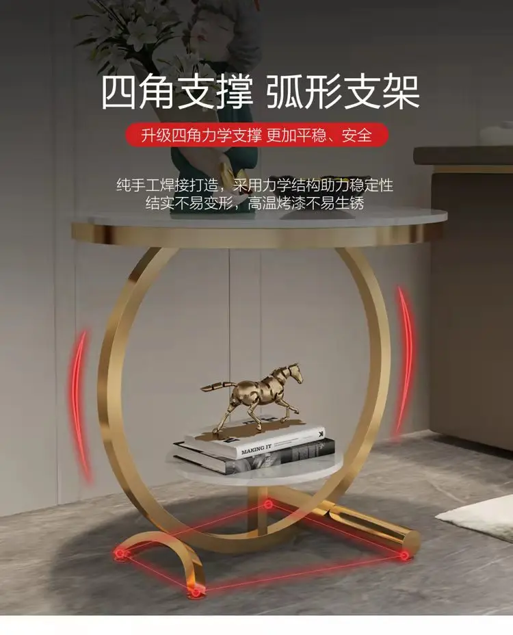 Luxury Two Layer Marble Coffee Table Corner Table Creative Movable Small Round Table Golden Black Frame Home Furniture
