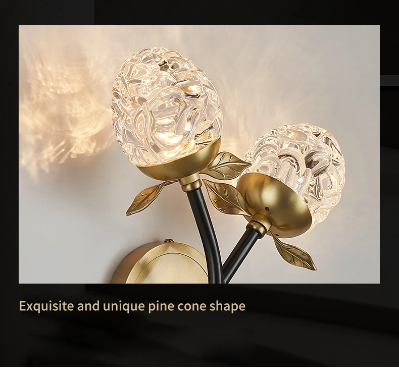 Unique pine cone shape, textured glass lampshade, soft light transmission, all copper lamp body, durable, safer and more assured.