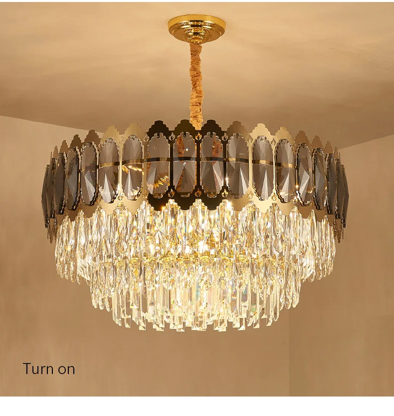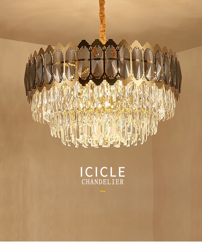 Luxury Gold Round Stainless Steel Line Chandeliers Lighting