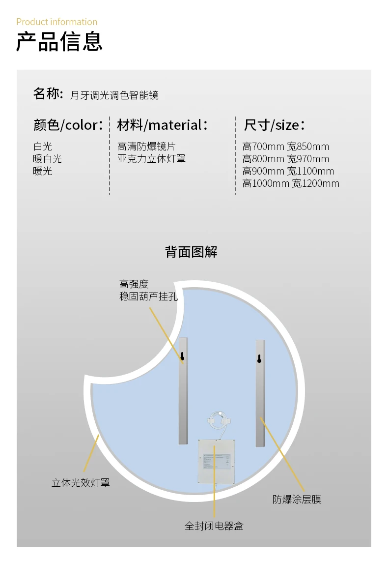 Wall Mounted Bathroom Mirror With Led Light Sensor Backlight 1