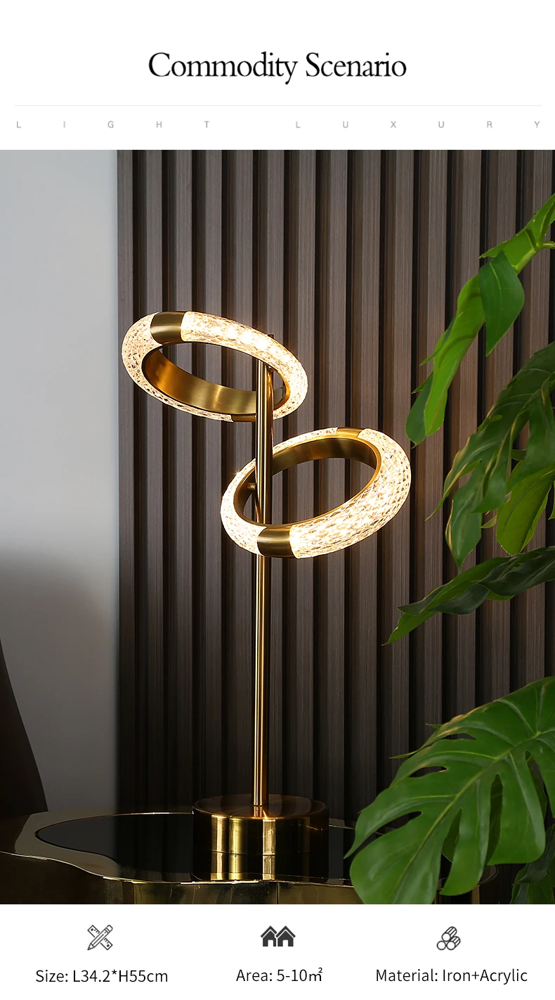 Hardware electroplating lamp body, with rotatable acrylic light guide lampshade, humanized design, focusing on beauty.