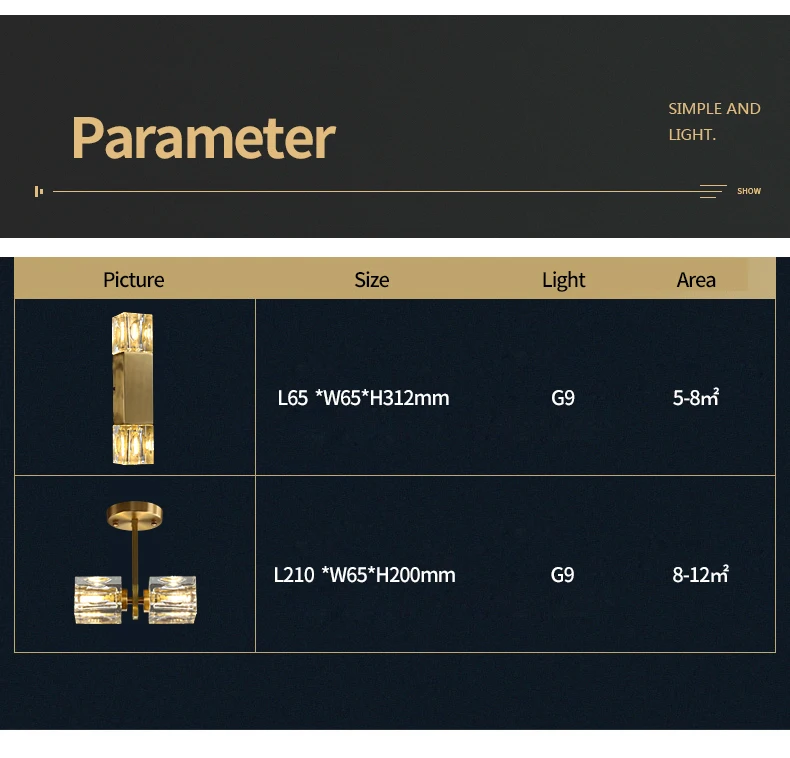High light transmission crystal lampshade, all copper material is thick and stable, anti-corrosion and anti-rust.