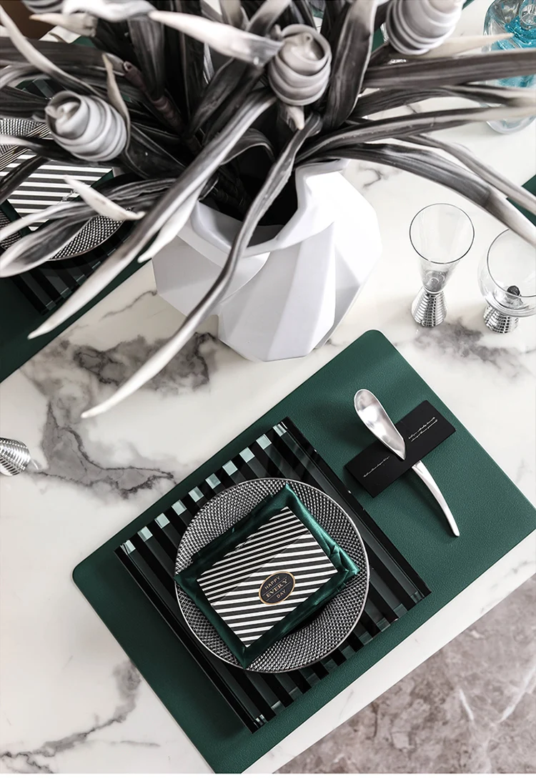 Silver Glass Brief Gilt Stripe Western Black White Striped Square Crystal Tray Set