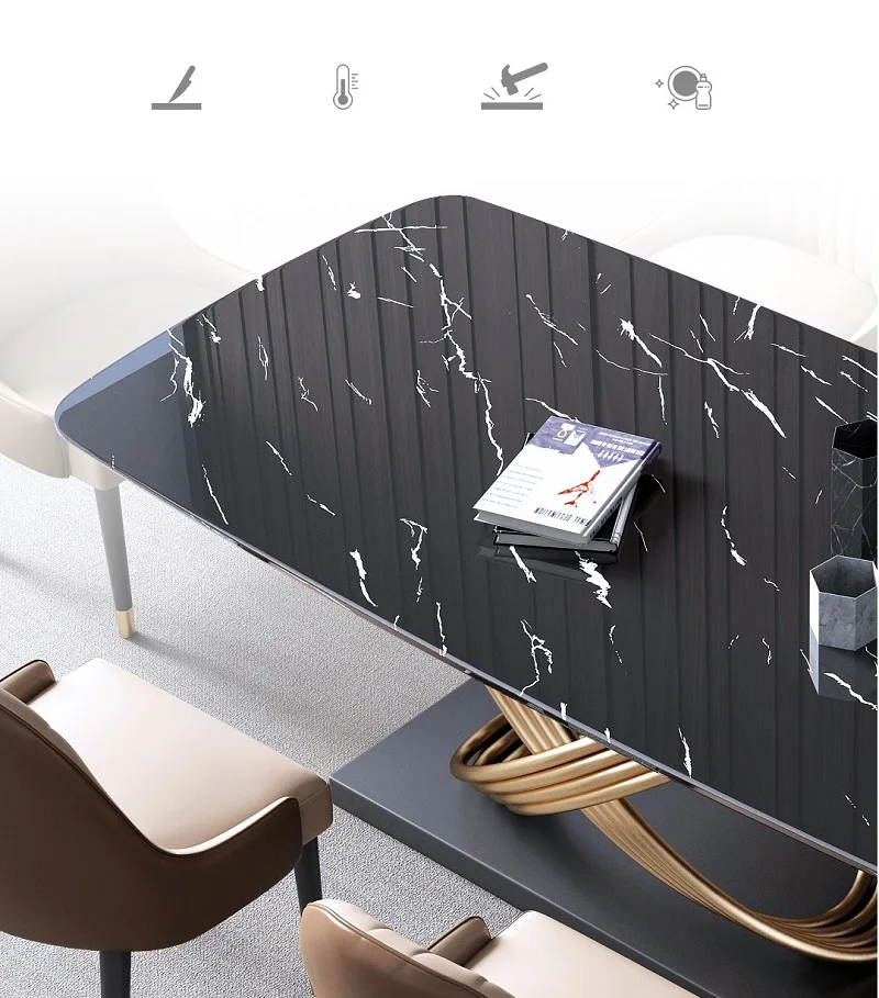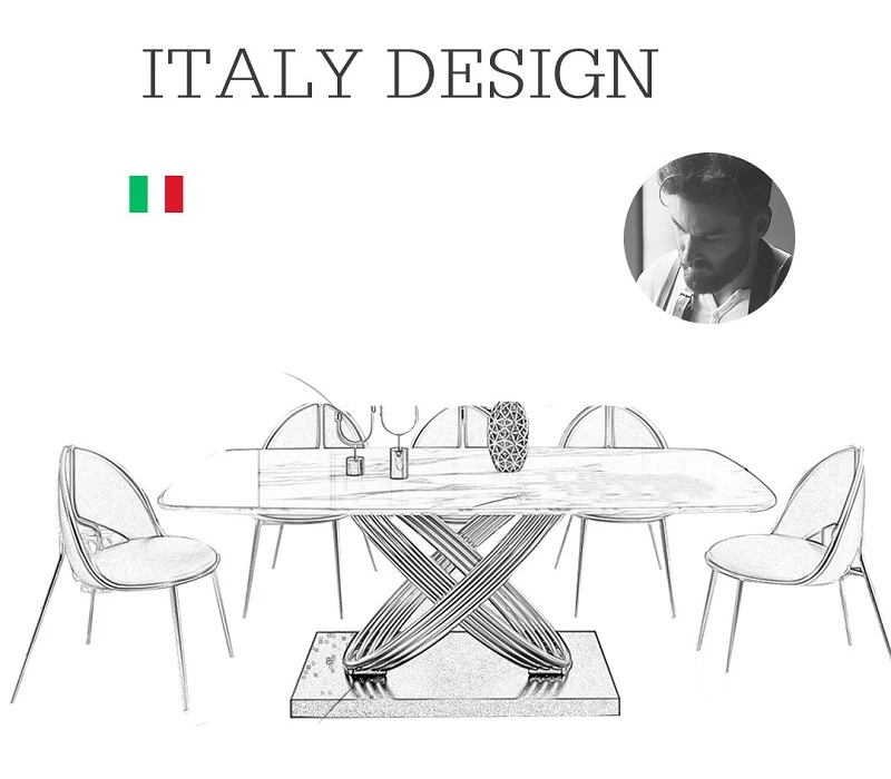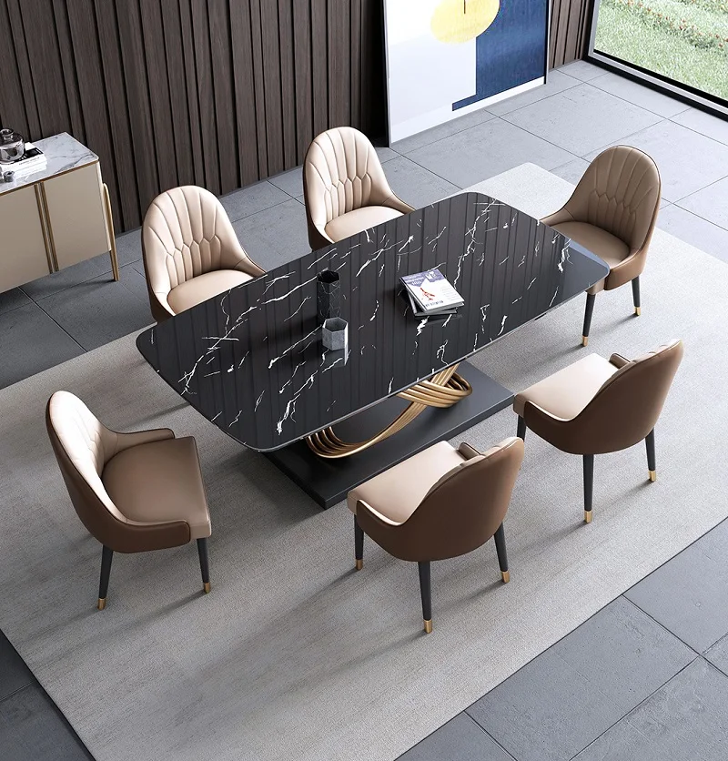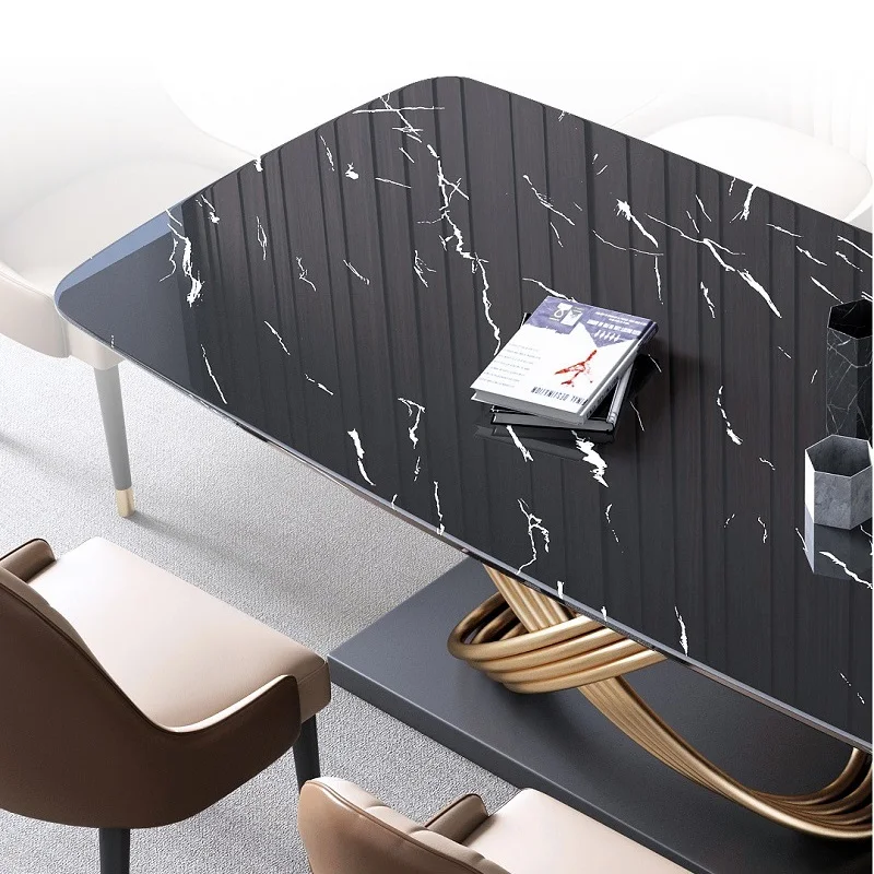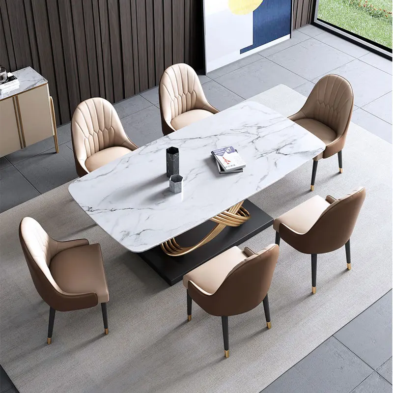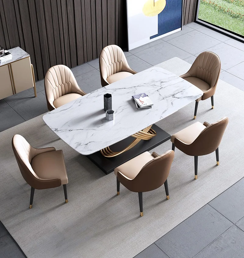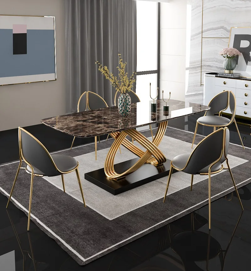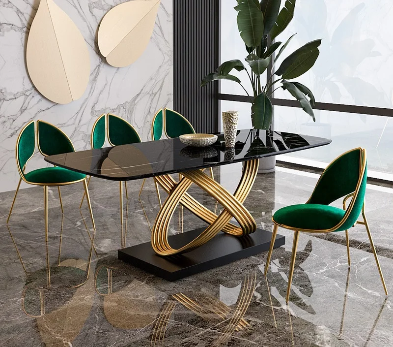 Simple Light Luxury Stainless Steel Marble Creative Golden Dinning Table Set
