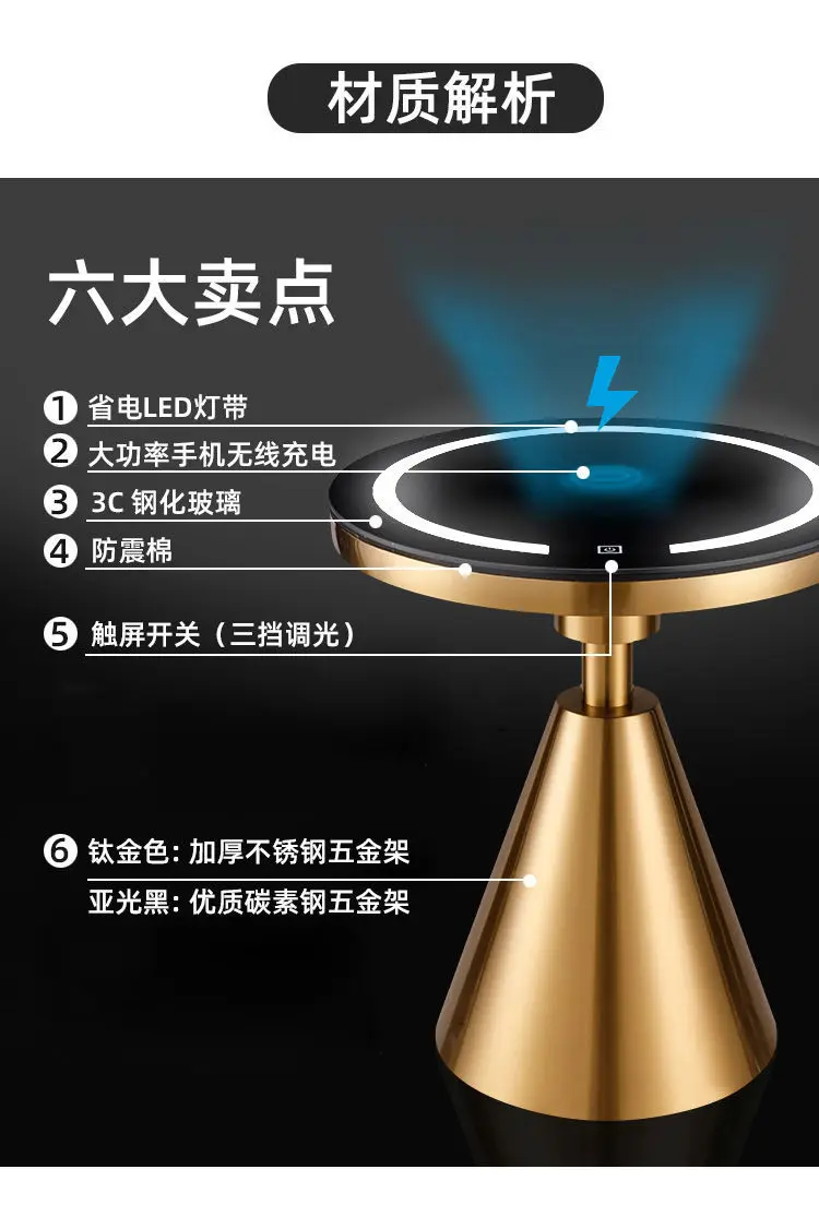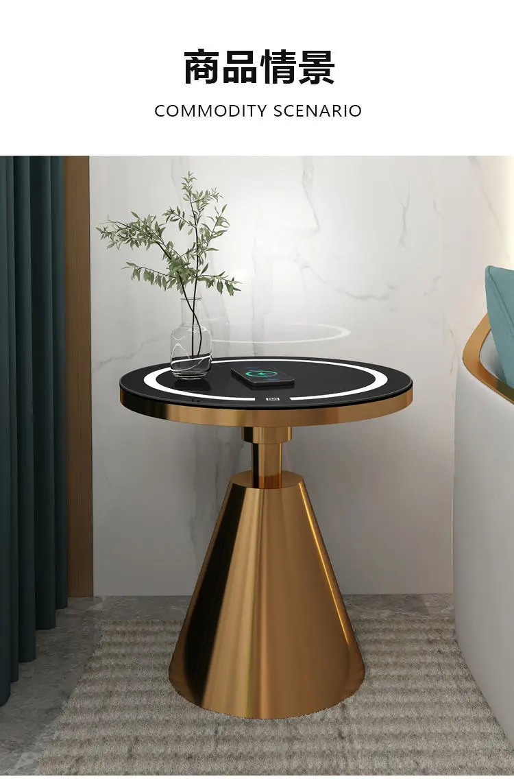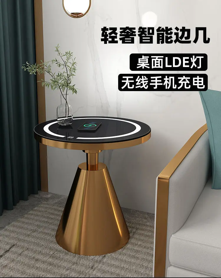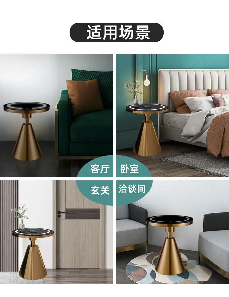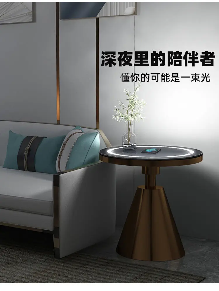 Simple modern light luxury living room sofa side wireless smart charging net red with lamp corner coffee table small round table