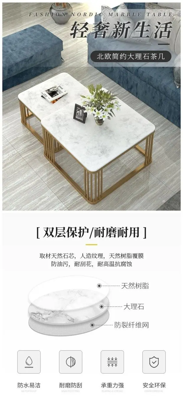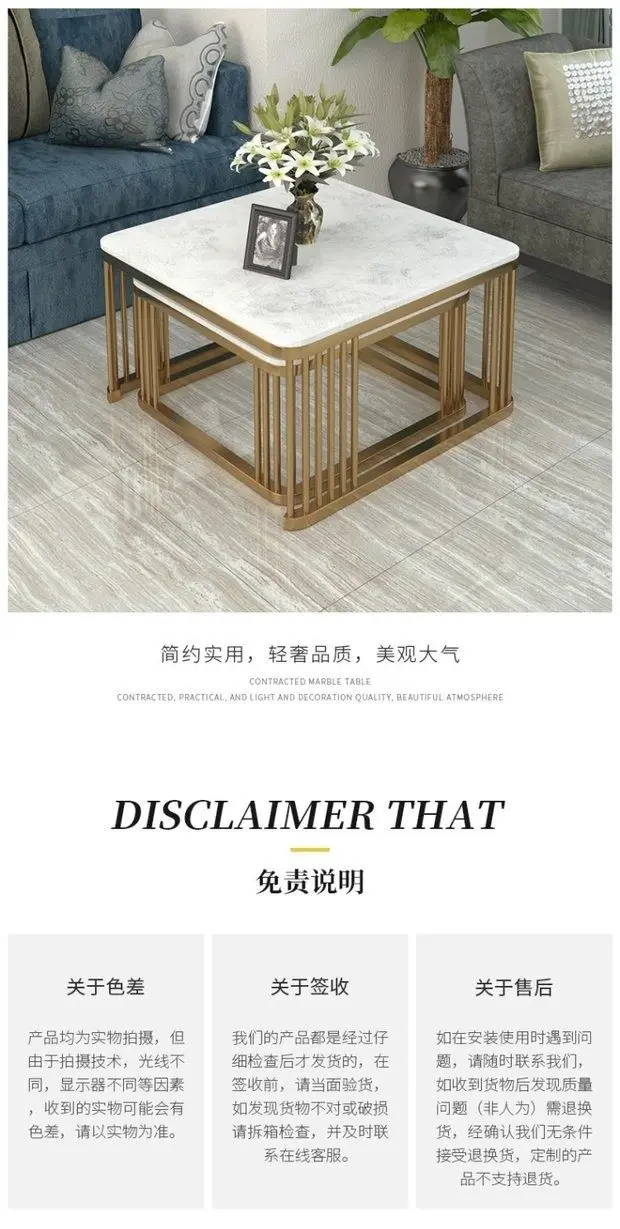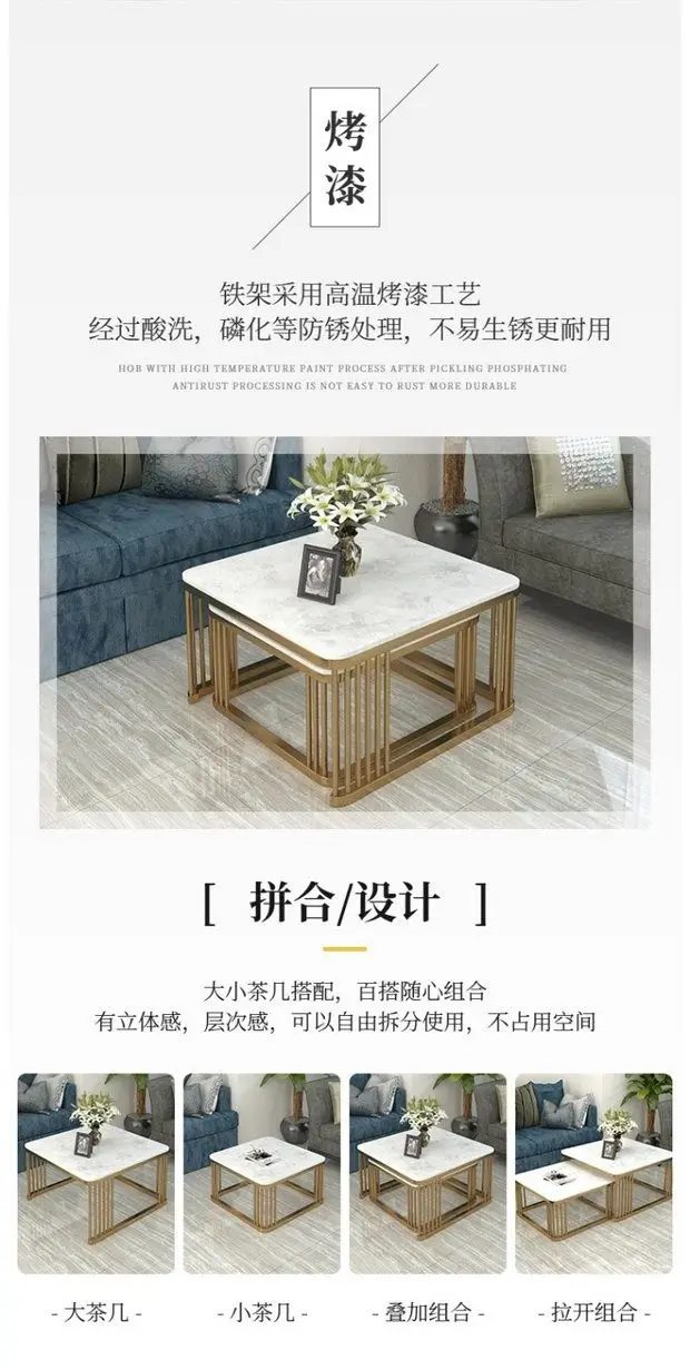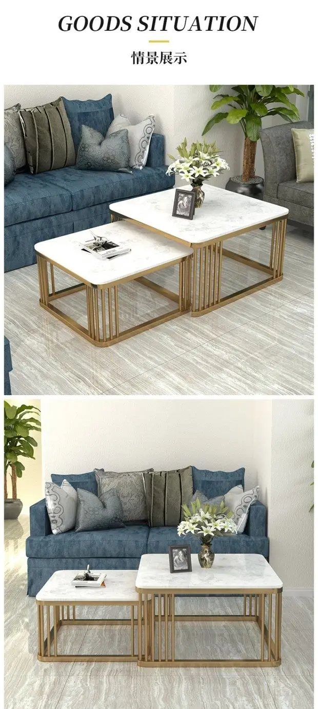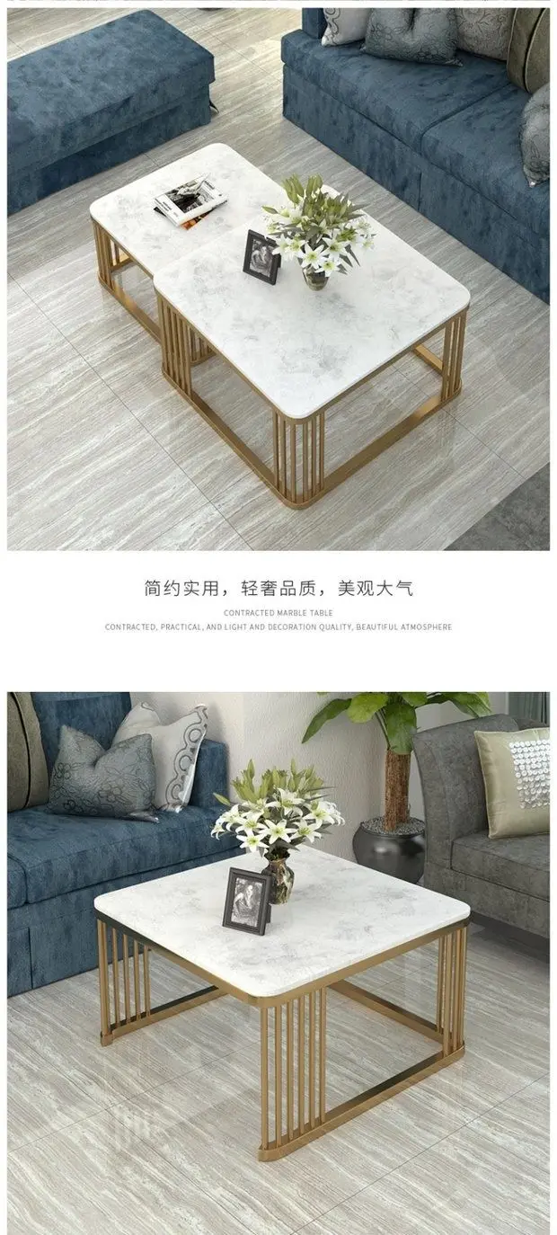Square Marble Top Convertible Coffee table combination