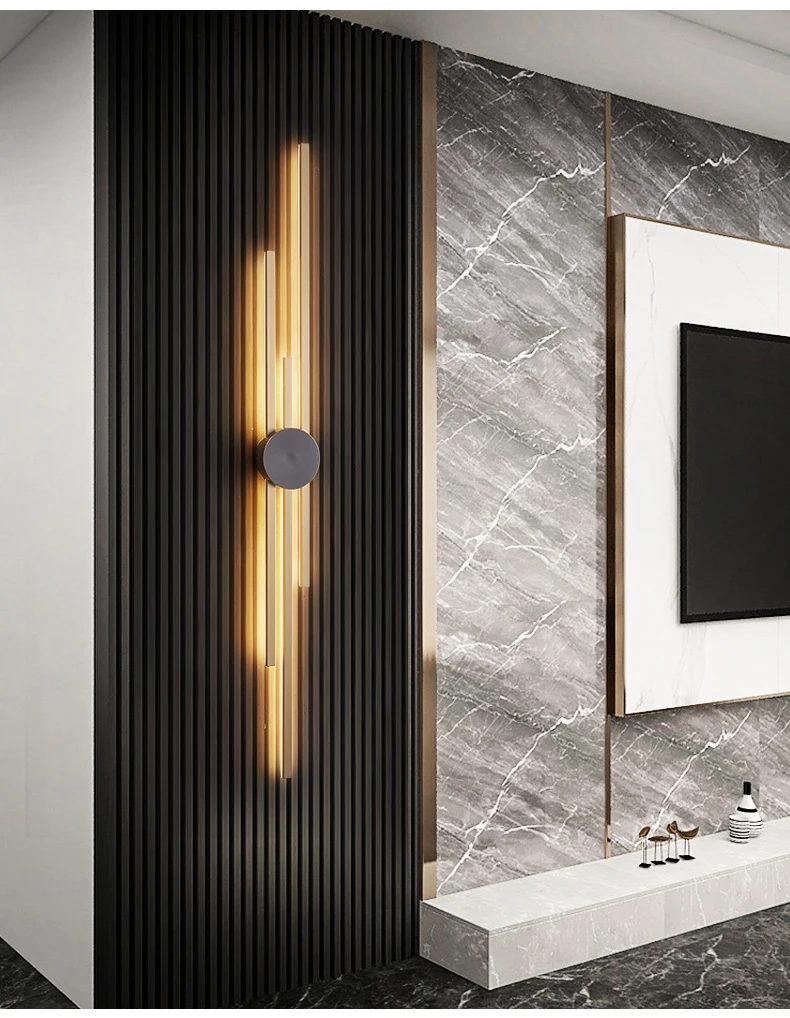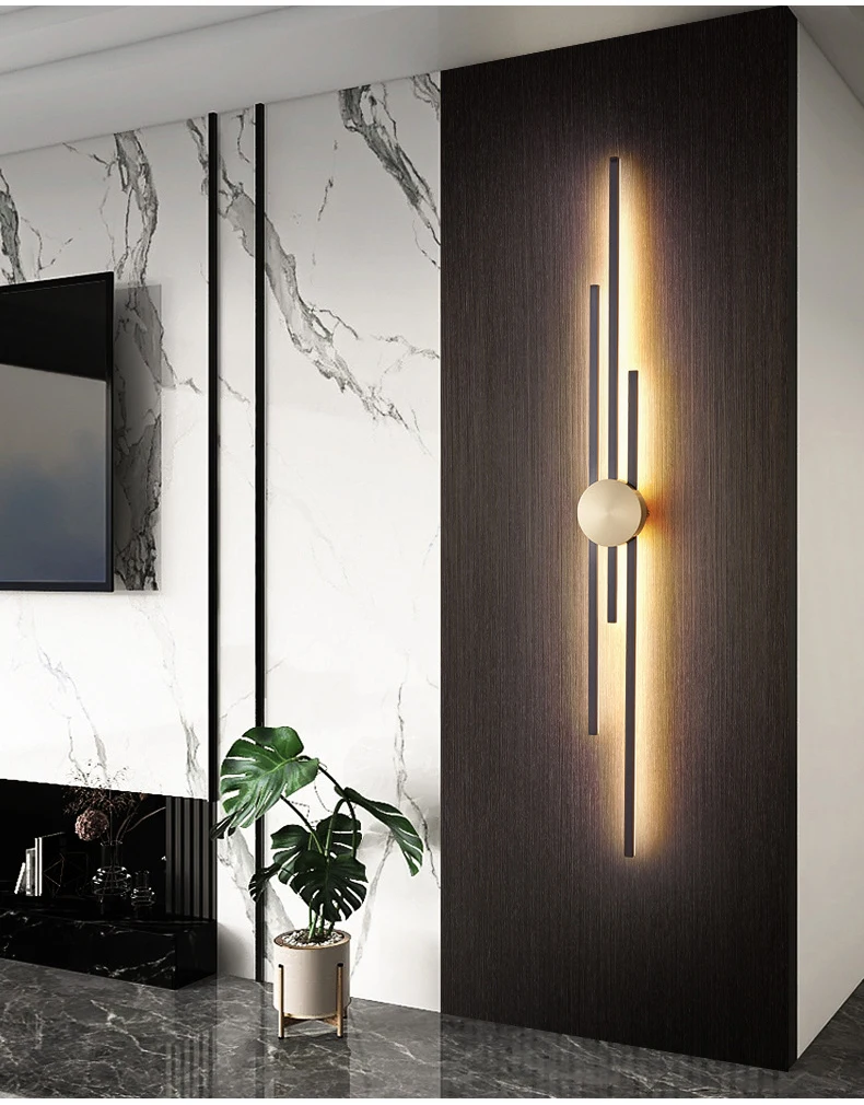 Surface Mount minimalist Luxurious Black Gold LED Long Wall Light